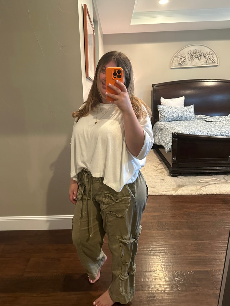 The oversized white tee I am wearing is one of my favorite everyday pieces. It is very flowy and comfortable, which is exactly what I look for. I chose it in white and intentionally went with an oversized fit. I could have sized down, but I wanted a more relaxed, flowy look that drapes nicely on a shorter frame. For reference, I am wearing a size large.